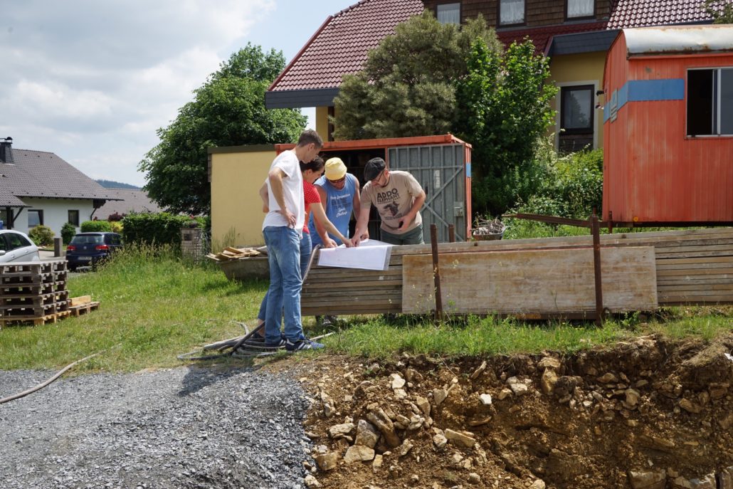 Die Bauherren selbst durften im Beisein ihrer Familie und dem Team der HH-Wohnbau GmbH die von ihnen mit Erinnerungsstücken gefüllte Zeitkapsel einmauern. Abgerundet wurden die Feierlichkeiten bei einer Planbesprechung über das weitere Vorgehen mit einem Gläschen Sekt.