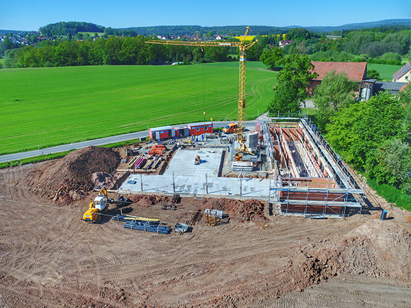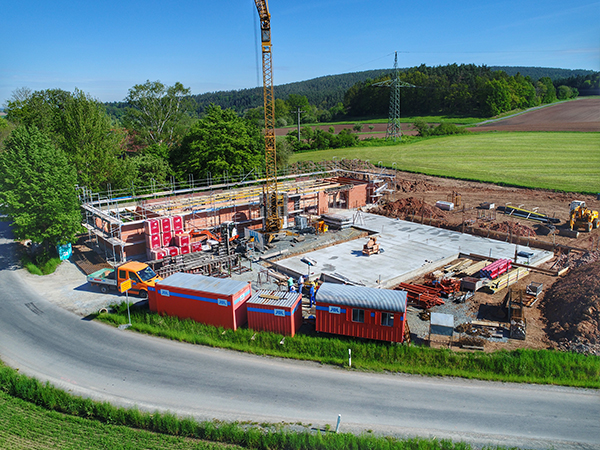 Gewerbebau, Herrmann Bau, Industriestraße 17, Mainleus bei Kulmbach, Nähe BayreuthRohbau eines Industriebaus